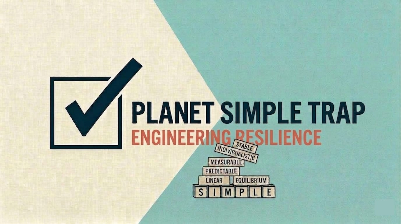 The problem is that engineering resilience, pursued consistently, produces the same outcome as the ultimate Planet Simple trap: a system that’s increasingly tightly optimized and increasingly brittle. A system that is good at bouncing back from predictable disruptions but fundamentally unprepared for the disruption that changes the landscape entirely.